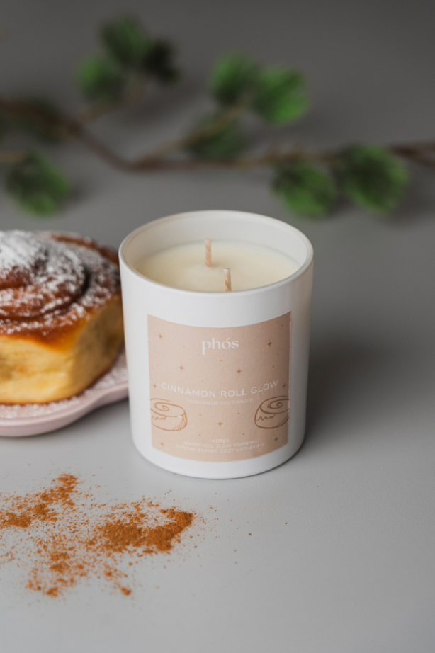 Fill your home with the warm, comforting aroma of freshly baked cinnamon rolls. This hand-poured soy candle is thoughtfully crafted to make your kitchen and living spaces smell inviting and cozy. Perfect for daily rituals or a baking session, it turns every moment into a delightful, heartwarming experience. A charming essential for every home and kitchen. A little treat for yourself or a thoughtful little gift!